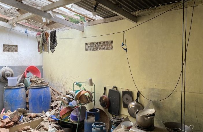 Kondisi salah satu rumah warga yang rusak cukup parah akibat gempa di Kabupaten Sumedang, Selasa (2/1). - Image