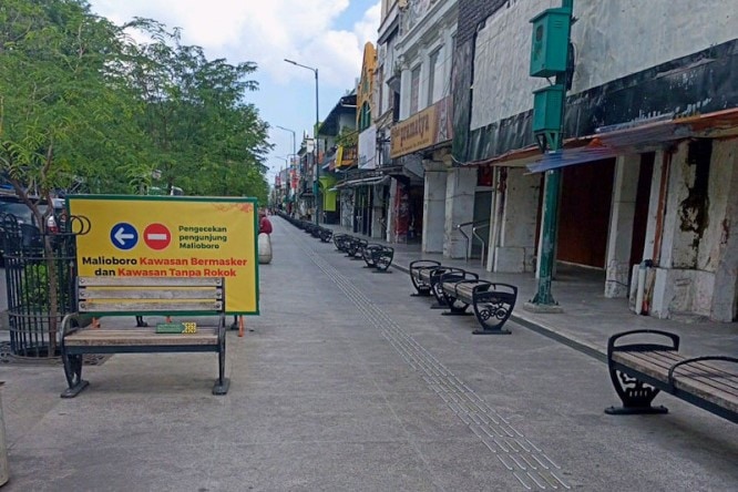 Suasana kawasan Malioboro, Jogjakarta, pada hari pertama PPKM darurat, Sabtu (3/7). Satgas Covid-19 Jogjakarta/Antara