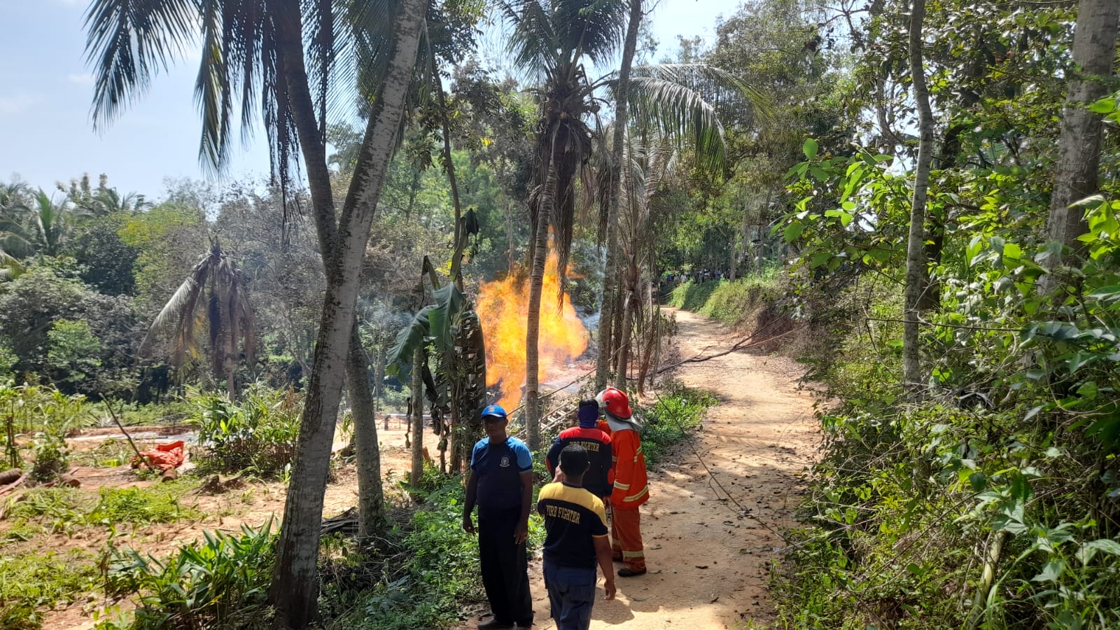 Untuk mencegah terjadi dampak lebih buruk, polisi memasang police line di sekitar lokasi semburan api. Police line sebagai tanda tidak ada yang boleh mendekat.