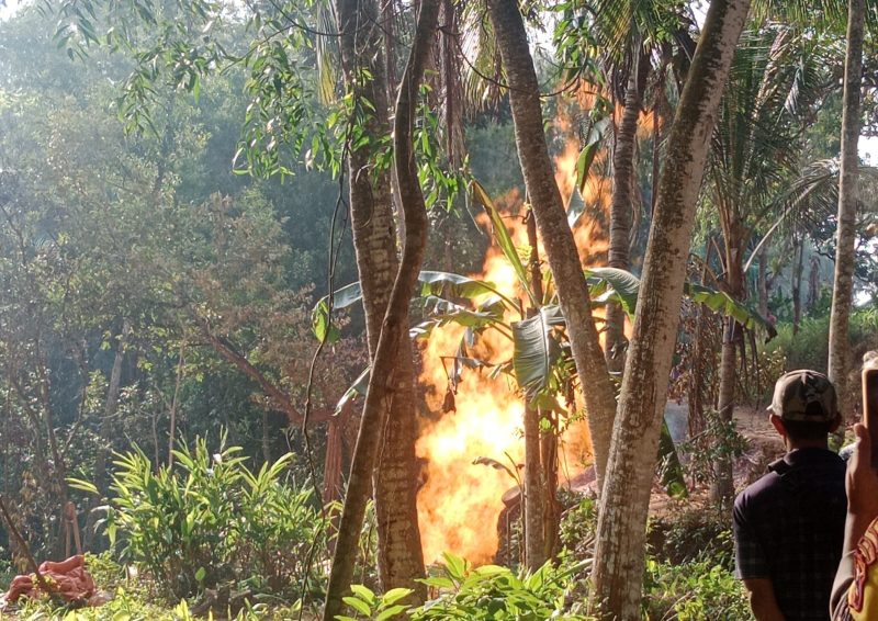 Lokasi semburan api dari galian sumur bor di Dusun Kadur Barat, Desa Kadur, Kecamatan Kadur, Kabupaten Pamekasan.