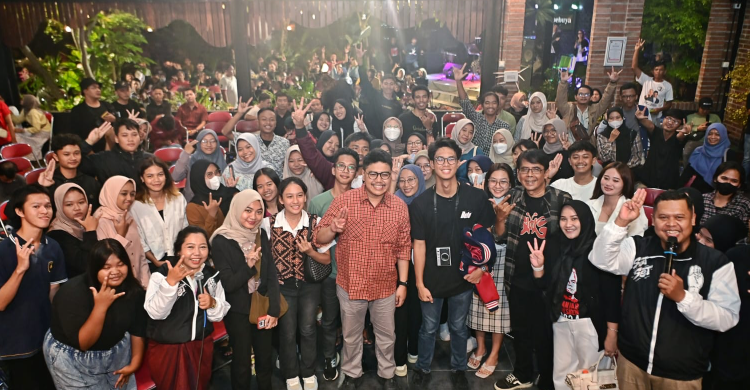 JawaPos.com - Dalam lanjutan konsolidasinya, Putra Capres Nomor Urut 3 Muhammad Zinedine Alam Ganjar menyerap aspirasi dari sejumlah anak muda yang hadir di Tabebuya Cafe, Wates, Kulon Progo, DI Yogyakarta, Senin (22/1).