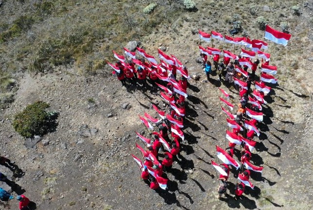 Pengibaran bendera di Puncak Gunung Arjuno. Pemprov Jatim for JawaPos