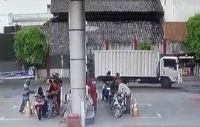 Tangkapan layar pelaku saat menyalakan korek api di SPBU di Desa Adidharma, Kecamatan Gunun Jati, Kabupaten Cirebon, Kamis (8/9). Khaerul Izan/Antara