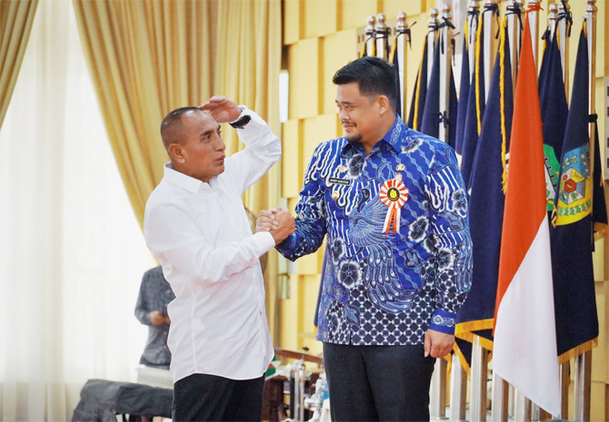JawaPos.com - Upaya Wali Kota Medan Bobby Nasution dalam membina perusahaan dan menjaga iklim investasi di wilayah Kota Medan mendapat apresiasi dari Pemerintah Provinsi Sumatera Utara. Sebagai bentuk apresiasi, Selasa (15/11), Gubernur Sumut memberikan Lencana Penghargaan Produktivitas Siddhakarya Tingkat Provinsi Sumatera Utara Tahun 2022 kepada orang nomor satu di Pemko Medan ini di Aula T Rizal Nurdin Jalan Sudirman Medan.