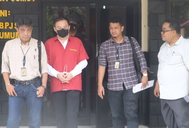 Bos judi online terbesar di Sumatera Utara Apin BK (dua kiri), dibawa dari Polda Sumatera Utara ke Kejaksaan Tinggi Sumatera Utara. Polda Sumatera Utara/Antara