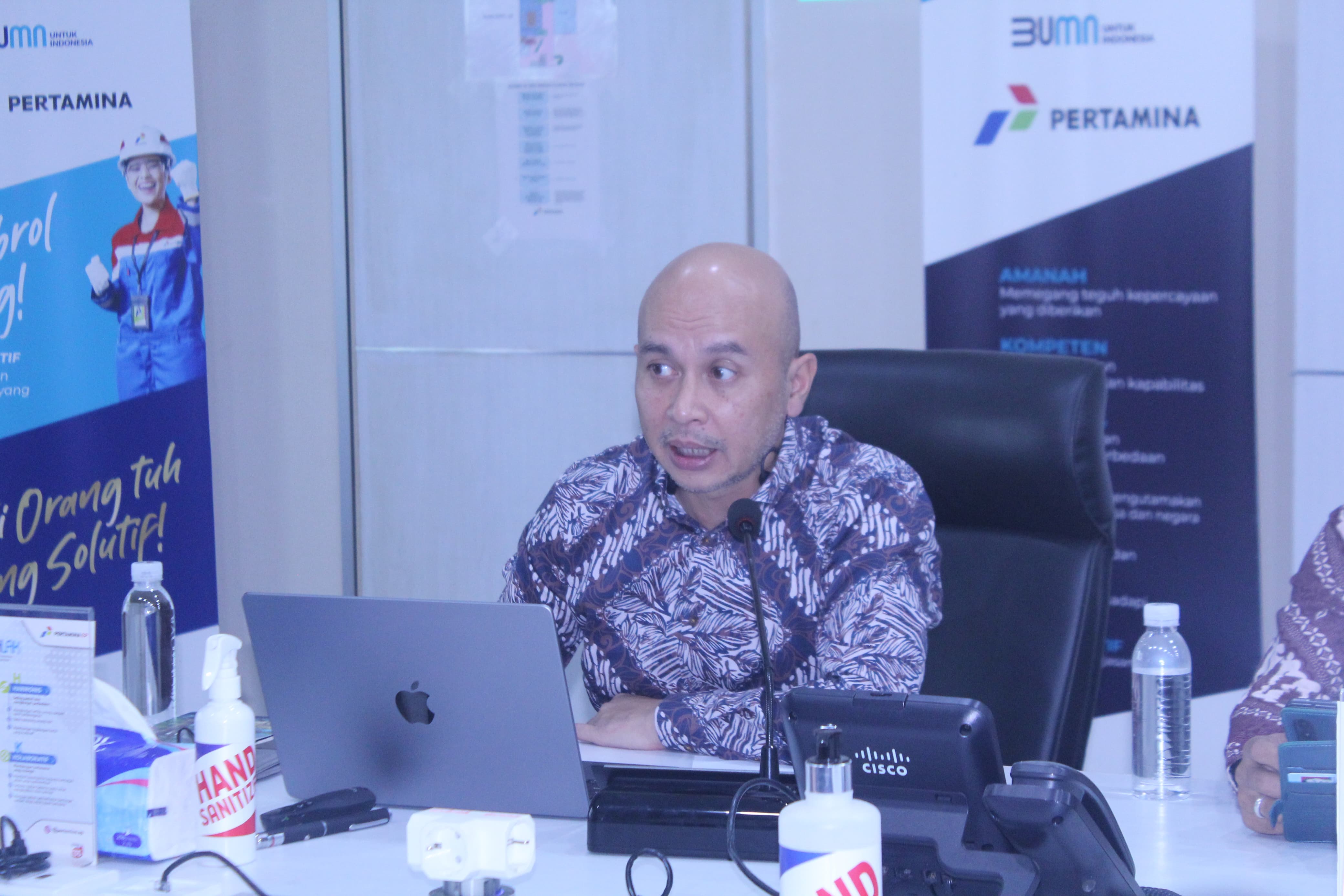 Senior Manager Production and Project PEP Zona 7 Sakti Parsaulian dalam acara kunjungan media nasional di Kantor PEP Zona 7, Cirebon, Jawa Barat, Rabu (28/2).