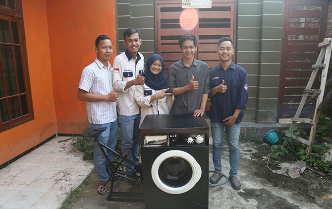 Di bawah bimbingan dosen Muhammad Lukman, kelompok mahasiswa tersebut manfaatkan mesin cuci rusak yang sudah tidak dipakai lagi. Kemudian menggabungkannya dengan sepeda.