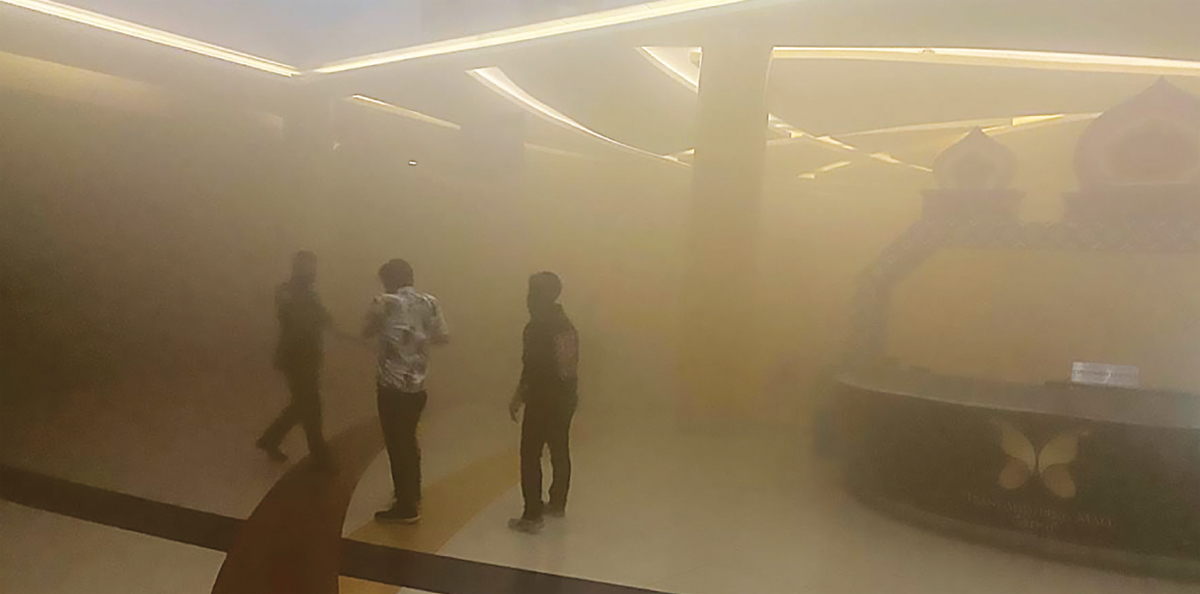 ’’Kondisinya di dalam banyak asap. Kita sulit bernapas, gelap juga. Hidungku sampai pedih sekali karena asapnya,’’ ujar Zulfan yang merupakan salah seorang karyawan yang bekerja di mal tersebut.