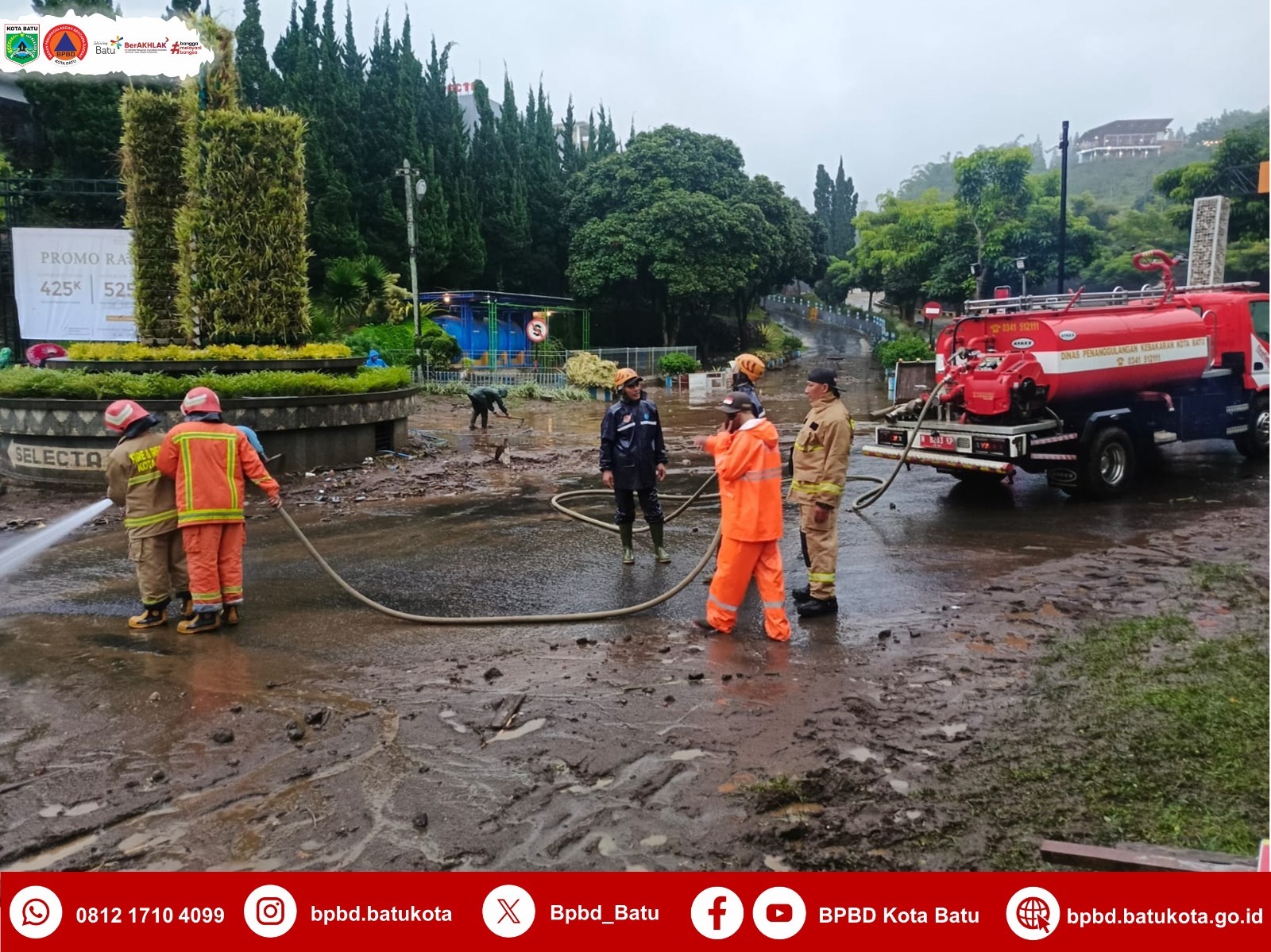 “Kondisi drainase yang tidak mampu menampung debit air menjadi penyebab utama banjir luapan ini. Selain itu, derasnya arus air juga membawa material lumpur dengan ketebalan sekitar 20 hingga 25 cm, yang menghambat akses di Bundaran Selecta,” Kepala Pelaksana BPBD Kota Batu, Agung Sedayu, Sabtu (22/2
