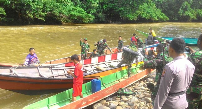 Tim SAR bergerak ke Desa Long Sulit menggunakan long boat, kemudian berjalan kaki di tengah hutan belantara, Sabtu (26/11).