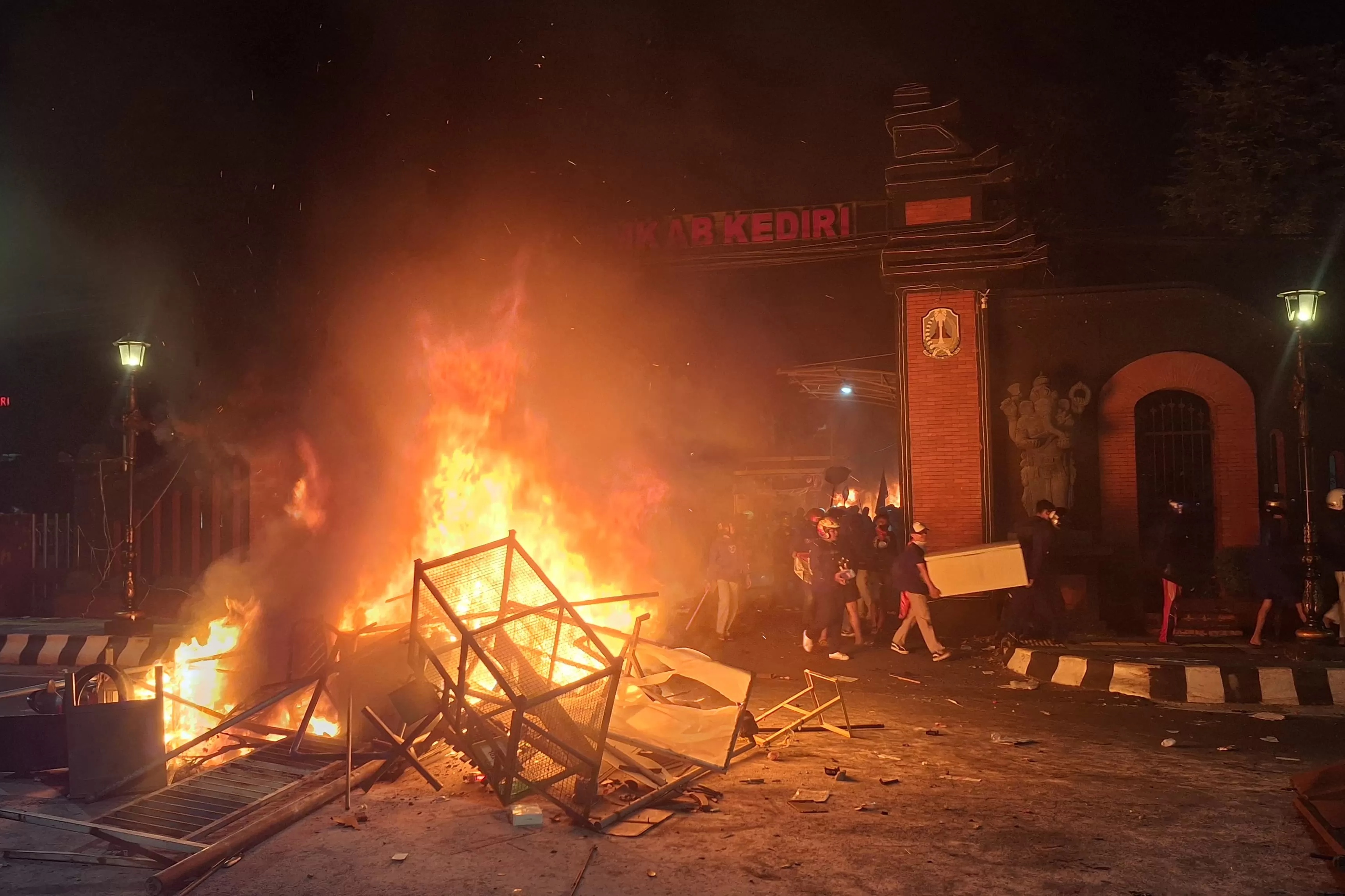 Gedung DPRD Kabupaten dan Kota Kediri yang Dibakar massa Sabtu malam (30/8). (Dokumentasi Radar Kediri Jawa Pos)