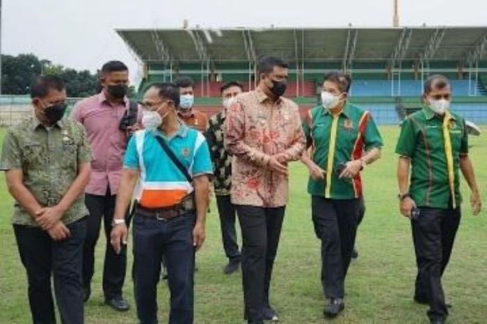 Wali Kota Medan Bobby Nasution saat meninjau kondisi Stadion Teladan Medan.