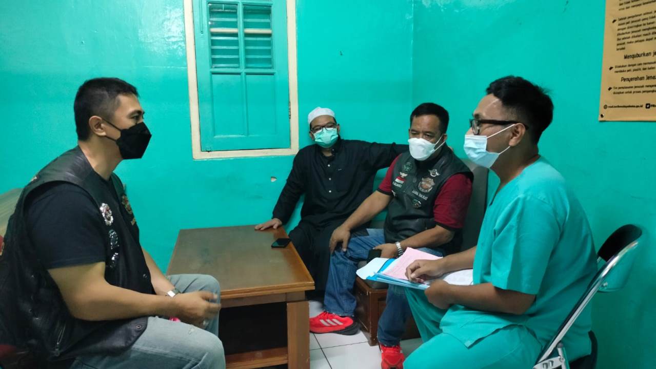 Penyelenggara event 50th Golden Memorial Wingday HDCI bersama pimpinan Ponpes Miftahul Huda Al Abidin berbincang dengan perawat RSUD dr Soekardjo mengenai kondisi santri korban tabrak lari.