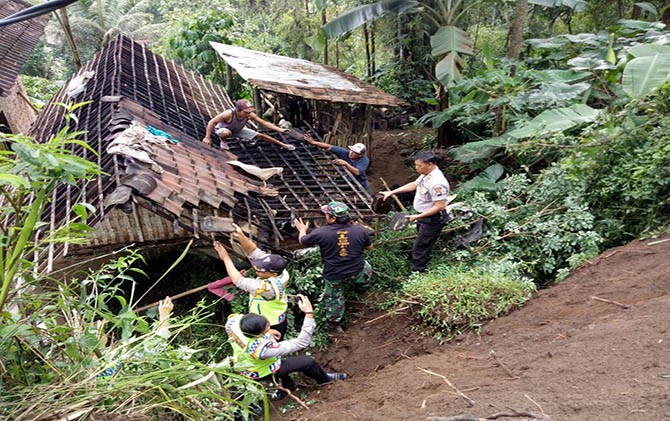Seperti di Desa Ngadirejo, Kecamatan Poncokusumo, Kabupaten Malang, Sabtu (6/1). Longsoran tanah dari tebing menerjang dua rumah warga. Kerusakan parah terjadi di bagian dapur. Rumah tersebut diketahui milik Sakun, 72, dan Saprah, 60.