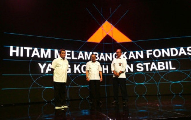 Semen Indonesia Kini Menjadi SIG (kiri ke kanan) Direktur utama Semen Indonesia, Hendi Prio Santoso, Komisaris Utama Semen Indonesia, Soekarwo, dan Staf Ahli Kementrian PUPR, A. Gani Ghazaly Akman saat memperkenalkan logo baru di Jakarta, Selasa (11/2).Pe