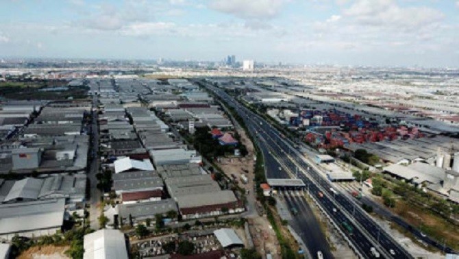 RIANA SETIAWAN / JAWA POS kepadatan Kawasan industri Margomulyo dengan akses ruas Jalan Tol Gresik, Kemarin, (13/7). Pengembangan Kawasan sisi utara Surabaya Barat termasuk Margomulyo diwacanakan menjadi area pergudangan dan pengembangan sektor ekonomi.