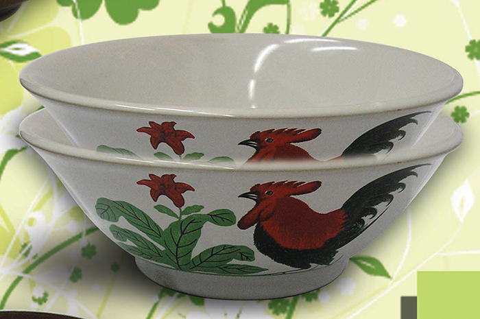 Mangkuk ayam jago ini hampir dimiliki oleh setiap rumah, dan kerap pula dijumpai di pedagang bakso ataupun mie ayam.