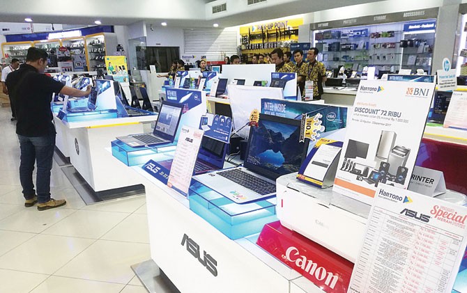 MASIH TERTEKAN: Deretan produk elektronik di Hartono Elektronika, Bukit Darmo Boulevard, Surabaya.