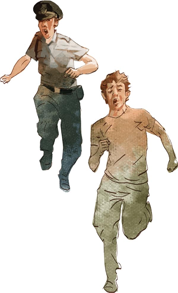 Tapi, ya Tuhan, begitu mendongak ke arah jalan, gerombolan warga datang menyerbu. Dua belas, sembilan belas, waduh, mungkin puluhan. Mereka membawa senjata seadanya. Palu, kayu, sapu, bahkan sendok-garpu. Mungkin dia sedang asyik makan mi, lalu diajak mengejar maling, mengejar aku. Aku paling tak tega memukul orang-orang awam begini. Lagi pula, Kakek Supriatna tak pernah mengajarkan jurus untuk menghadapi orang sebanyak ini. Lebih baik aku lari.