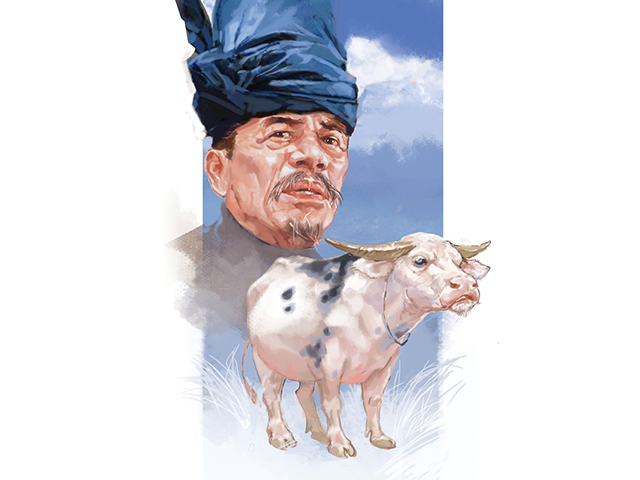 Seluruh deskripsi fisik ihwal tedong saleko, kerbau belang yang menjadi prasyarat dalam ritual rambu solo di Toraja, bisa kita dapati pada tubuh Bleki. Di samping itu, ketahanannya dalam menghadapi penyakit juga terbilang ajaib. Ketika sembilan ekor kerbau milik Kakek Is mati serentak terserang septicaemia epizootica –atau ngorok, istilah yang digunakan awam– Bleki masih tampak bugar. Padahal, mereka hidup berdampingan di kandang yang sama. Tapi, yang lebih menarik minatku ialah bagaimana Bleki, berbeda dari kerbau kebanyakan, kehilangan perangai liarnya sehingga ia tak memerlukan seorang gembala; ia dibebas-lepaskan di Dusun Wanatirta, dan tak pernah sekali pun membuat kegaduhan dengan merusak perkebunan atau menubruk sembarang orang; ia akan pulang ke kandang menjelang senja hari tanpa harus digiring.