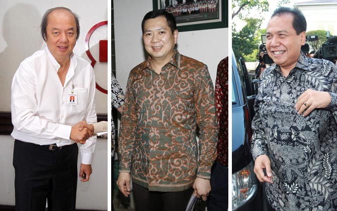 NAIK SIGNIFIKAN: (Dari kiri) Taher, Hary Tanoesoedibjo, dan Chairul Tanjung.