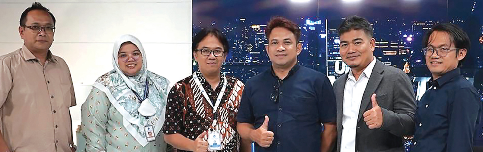 Dari kiri Tomy Setiawan, Meka Rina, Muchammad Topan selaku tim Uji Laik Operasi Kemenekominfo saat diterima Cony Lustamana, Suprianto, dan Sofyan Hendra selaku perwakilan PT Jawapos Jakarta Digital TV