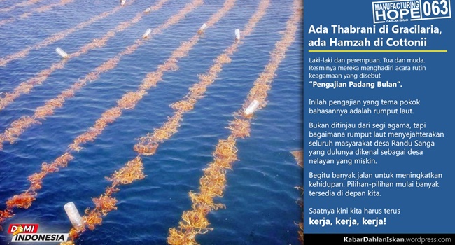 Data sementara di Kementerian Kelautan dan Perikanan, produksi rumput laut nasional pada 2014 mencapai 10,2 juta ton. ''Indonesia belum mampu mengolahnya menjadi produk turunan seperti makanan, farmasi, dan kosmetik,'' tuturnya. (jp/JPG)