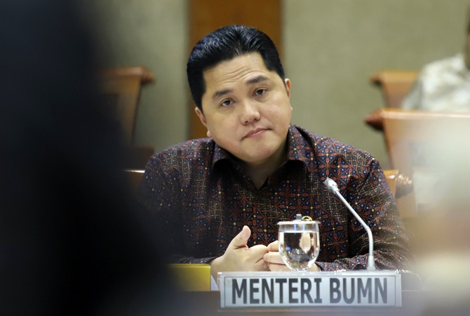 Menteri BUMN Erick Tohir  saat Rapat Kerja (Raker) Panitia Kerja (Panja) Jiwasraya di Kompleks Parlemen, Senayan, Jakarta, Rabu (29/1/2020). Raker Panja Jiwasraya membahas penyelesaian sengkarut PT Asuransi Jiwasraya (Persero). Foto: Dery Ridwansah/ JawaP - Image
