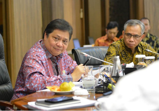Menko Perekonomian Airlangga Hartarto (kiri) mengumumkan penurunan suku bunga Kredit Usaha Rakyat (KUR) dari 7 persen menjadi 6 persen. (Istimewa)