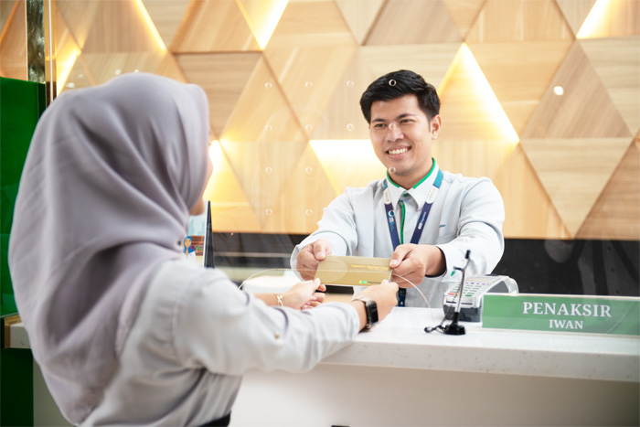 Ilustrasi petugas penaksir PT Pegadaian tengah melayani nasabah.