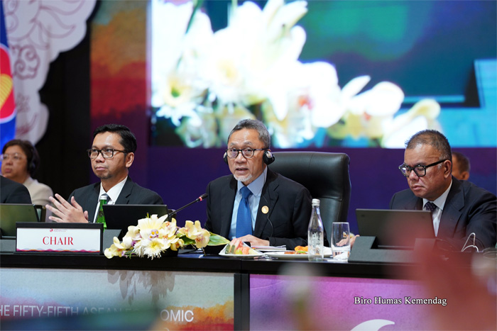 Menteri Perdagangan Zulkifli Hasan saat memimpin Pertemuan Konsultasi AEM-Kanada ke-12 pada Minggu (20/8) di Semarang, Jawa Tengah.