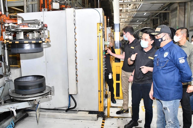 JawaPos.com - Ketua MPR RI sekaligus Ketua Umum Ikatan Motor Indonesia (IMI) Bambang Soesatyo (Bamsoet) memastikan kualitas tenaga kerja Indonesia sangat mumpuni dalam menghasilkan produk berkualitas internasional. Sebagaimana terlihat dalam managemen PT Evoluzione Tyres, perusahaan patungan Astra Otoparts dengan Pirelli yang memproduksi ban Pirelli di Subang, Jawa Barat. Menjadikan Indonesia sebagai salah satu pusat produksi ban Pirelli dunia, setelah Jerman, Brazil, dan China.