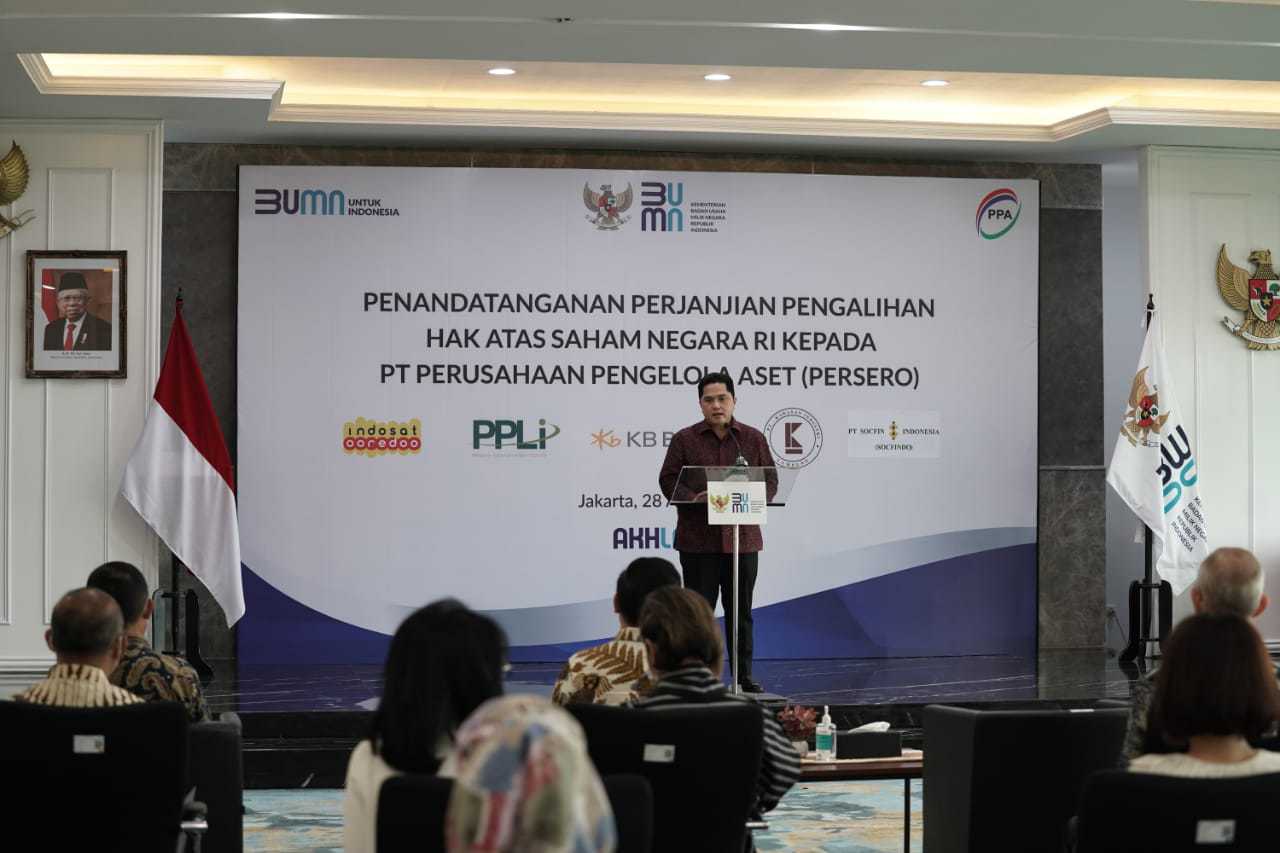 JawaPos.com - Saham negara di sejumlah perusahaan nasional yang selama ini dikelola Kementerian BUMN dialihkan ke PT Perusahaan Pengelola Aset (Persero) (PPA). Umumnya nilai saham negara di perusahaan nasional tersebut sangat minoritas.