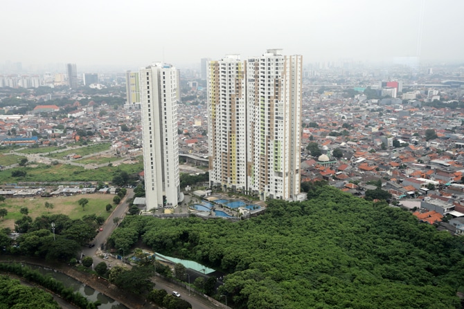 Deretan hunian vertikal atau apartemen di Jakarta, Senin (15/3/2021). . Menurut Peneliti Konservasi World Wide Fund Thomas Barano, keberadaan hunian vertikal bisa mendukung pembangunan berkelanjutan. Berdasarkan beleid pasal 29 dan 30 UU Nomor 26 Tahun 20