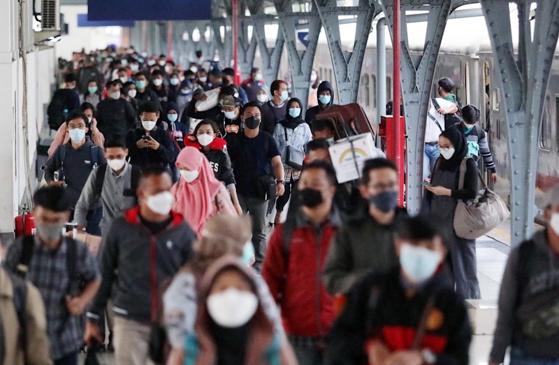Penumpang turun dari KA Serayu Purwokerto - Pasar Senen, Senin (17/5/2021). Terjadi kenaikan penumpang Arus Balik di Stasiun Kereta Api usai mudik Lebaran. FOTO : FEDRIK TARIGAN/ JAWA POS