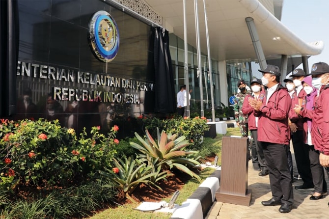 JawaPos.com - Menteri Kelautan dan Perikanan Sakti Wahyu Trenggono meluncurkan logo baru kementerian sesuai Peraturan Menteri Kelautan dan Perikanan Nomor 36 Tahun 2021 tentang Logo Kementerian Kelautan dan Perikanan dan Penggunaannya. Peluncuran logo baru berlangsung di Gedung Mina Bahari III, Jakarta Pusat pada Jumat (17/9).