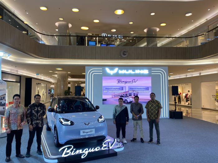 Mobil listrik terbaru dari Wuling Motors (Wuling) yakni BinguoEV mengaspal di Surabaya.