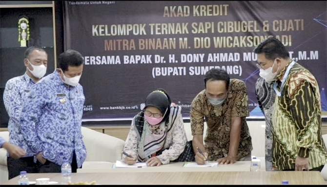 JawaPos.com - bank bjb Cabang Sumedang melakukan kemitraan dengan 23 orang peternak sapi Cibugel dan Cijati dalam pengembangan pilot project pengembangan budidaya sapi dengan memanfaatkan fasilitas bantuan modal Kredit Usaha Rakyat (KUR).