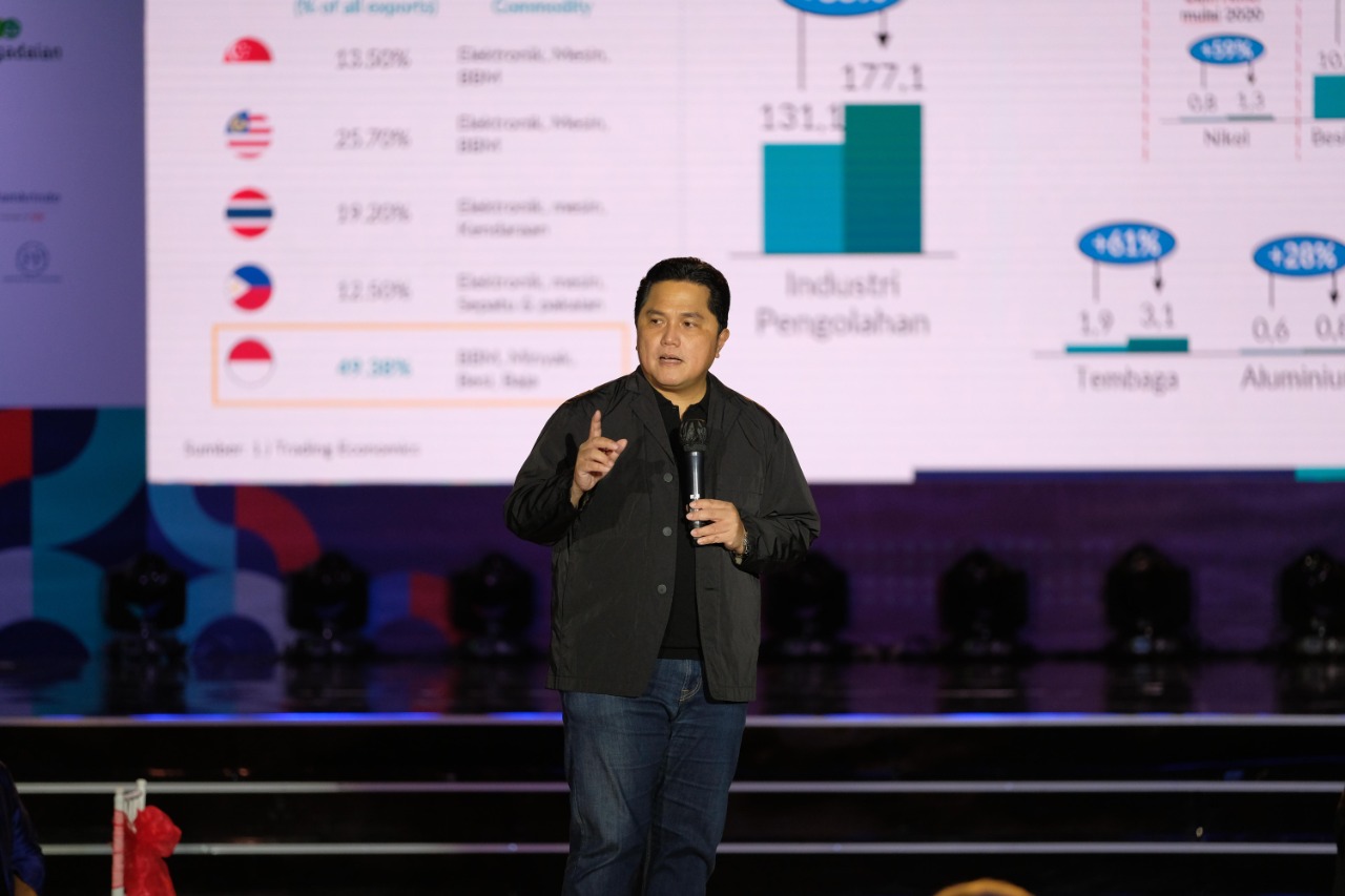 Menteri BUMN Erick Thohir pada malam penghargaan BCOMMS 2022, Rabu (23/3). (Istimewa for JawaPos.com)
