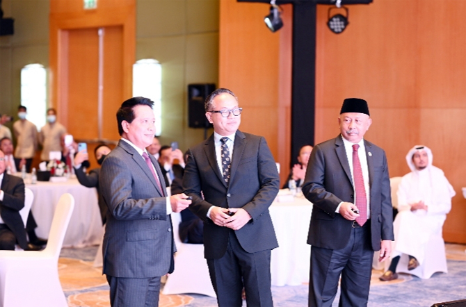 STRATEGIS: Dari kiri, Dirut BSI Hery Gunardi, Wakil Menteri BUMN II Kartika Wirjoatmodjo, dan Duta Besar Indonesia untuk Uni Emirat Arab Husin Bagis berbincang setelah membuka operasional kantor representatif BSI di DIFC, Uni Emirat Arab, pada Jumat (13/5