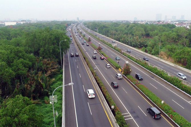 Ilustrasi volume lalu lintas di jalan tol sepananjang libur lebaran 1443 H