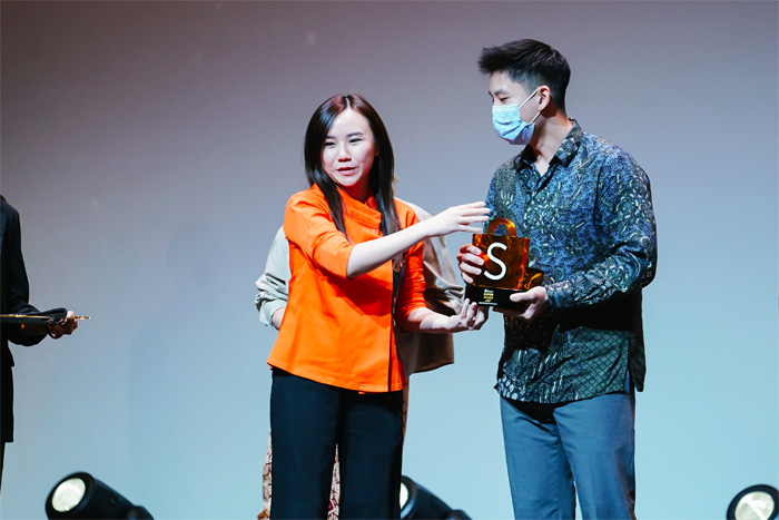 Christin Djuarto, Direktur Eksekutif Shopee Indonesia Memberikan Penghargaan Kategori Super Growing UMKM kepada Given Susanto, Pemilik Azella Collections di Shopee. (Istimewa)