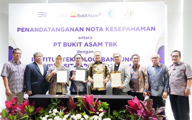 PT Bukit Asam Tbk (PTBA) bersama Institut Teknologi Bandung (ITB) dan Universitas Padjadjaran (Unpad) teken kerja sama teknologi dekarbonisasi hingga hilirisasi.