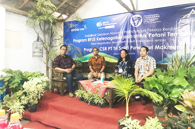 JawaPos.com - Guna mendukung Gerakan Nasional Perlindungan Pekerja Rentan (GN Lingkaran) yang digagas pemerintah melalui BPJS Ketenagakerjaan, PT Tri Sakti Purwosari Makmur (PT TSPM) lewat program Corporate Social Responsibility (CSR) memberikan  bantuan dana dalam bentuk pembayaran iuran BPJS Ketenagakerjaan petani tembakau di Kabupaten Jember, Jawa Timur.