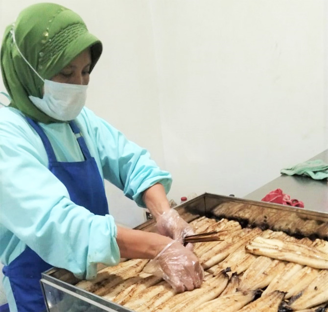 Kelompok Pengolah dan Pemasar (Poklahsar) pindang dan bandeng presto Raosna di Kabupaten Karawang, Jawa Barat.
