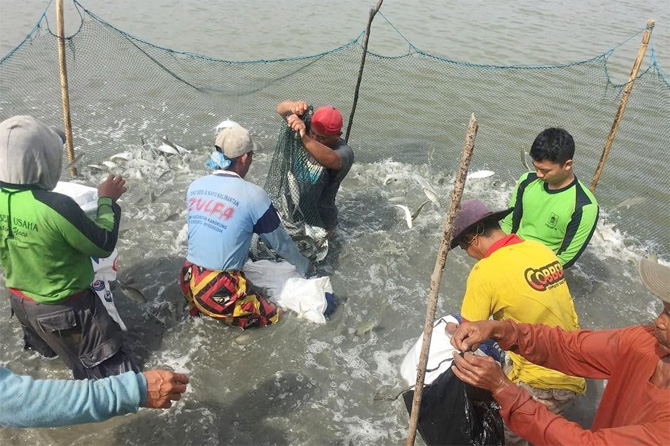 Bandeng dipilih menjadi komoditas unggulan budidaya di Kabupaten Bireun Provinsi Aceh karena dinilai lebih menjanjikan, teknik budidaya mudah, dan minim risiko. Dalam satu bulan, produksinya 7-10 ton dengan nilai produksi Rp100-150 juta. - Image