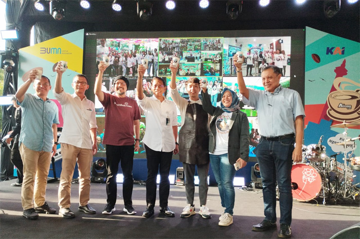 PT Kereta Api Indonesia (Persero) membagikan 25.000 cup kopi secara cuma-cuma kepada para pelanggan kereta api dalam acara “Ngopi Bareng KAI 2024”.