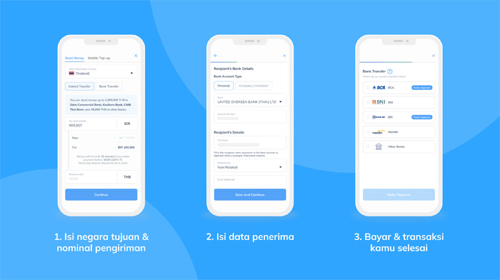 2. Pilih negara tujuan dan isi nominal uang yang ingin dikirim. Seluruh detail akan terlihat secara transparan di awal.