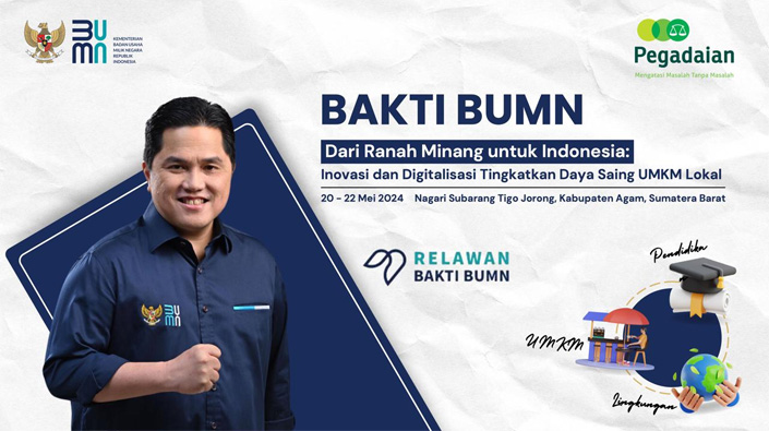 Pada Program Relawan Bakti BUMN Batch V kali ini, Pegadaian memiliki misi yaitu “Dari Ranah Minang untuk Indonesia” Sebagai salah satu bentuk penerapan prinsip sosial ESG PT Pegadaian yang dilakukan melalui pemberdayaan masyarakat yang berorientasi pada community based tourism.