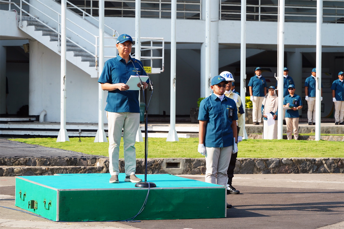 Direktur Keuangan dan Umum Petrokimia Gresik, Robby Setiabudi Madjid memberikan sambutan pada Upacara Hari Sumpah Pemuda di GOR Tri Dharma Petrokimia Gresik. (Istimewa). - Image